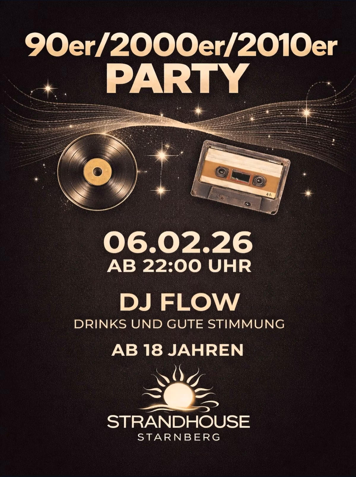 Dive into the ultimate throwback! Get ready for the 90er/2000er/2010er PARTY at Strandhouse. It's time to relive the golden eras of music and dance the night away with the best tracks from three iconic decades.